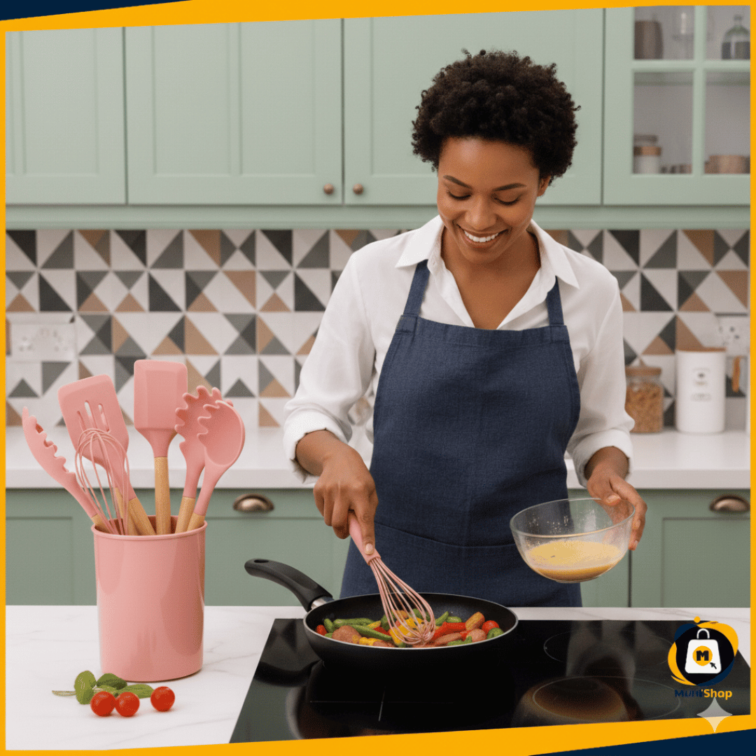 Transforme sua experiência na cozinha com o equilíbrio perfeito entre sofisticação e funcionalidade. O Kit de Utensílios da MULTISHOP foi selecionado para quem busca praticidade no dia a dia sem abrir mão do cuidado com suas panelas. Com um design moderno de silicone e cabos em madeira natural, ele é o conjunto definitivo para preparar desde receitas simples até jantares elaborados com total segurança e elegância.