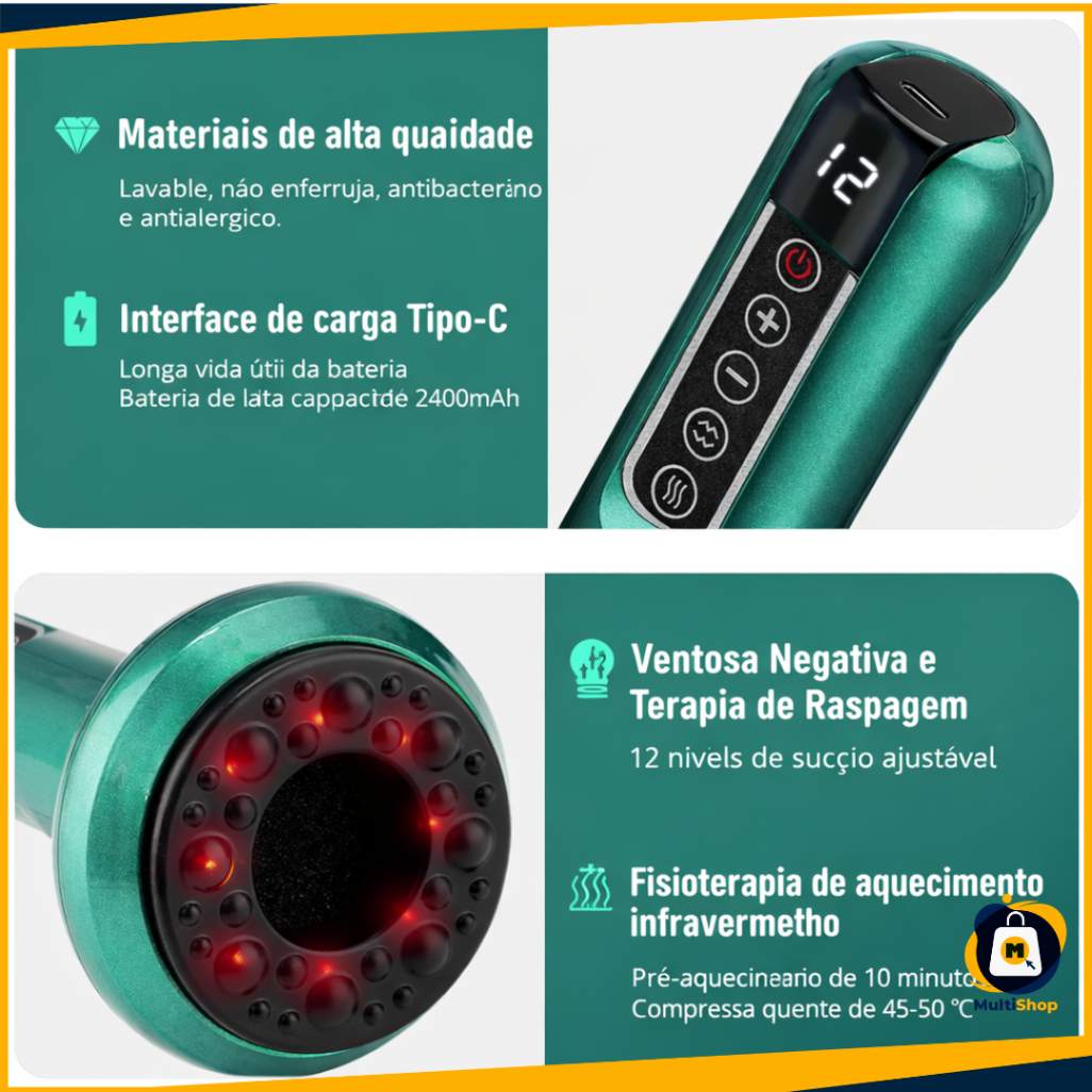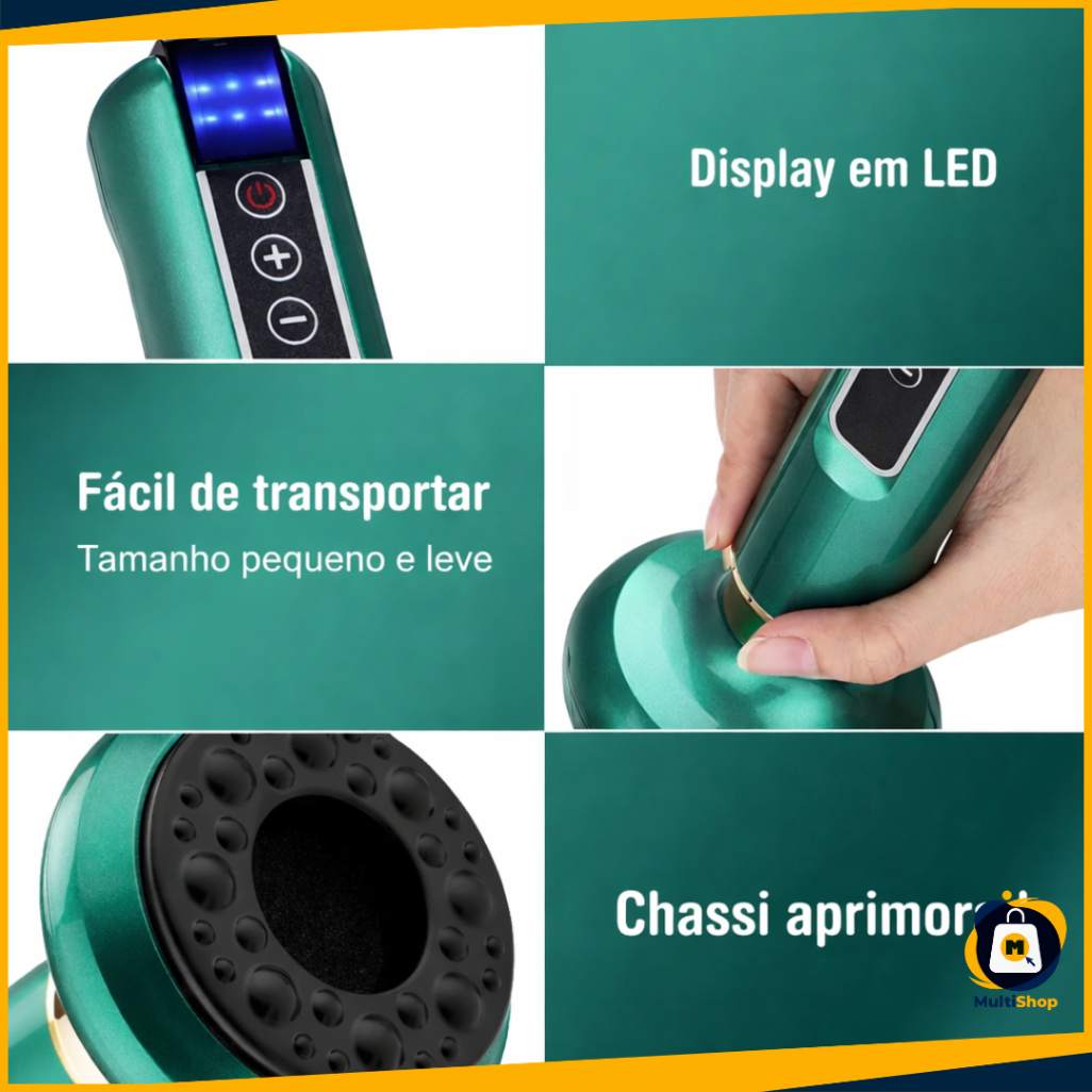 Cuide do seu corpo no conforto da sua casa com um massageador multifuncional inteligente, desenvolvido para ajudar no alívio de tensões, melhora da circulação sanguínea e redução do aspecto da celulite.