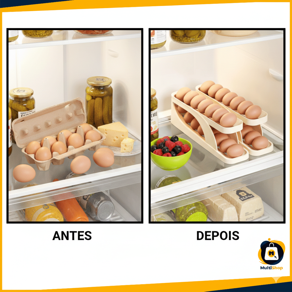 Você já tentou pegar um ovo no fundo da geladeira e acabou quebrando outro? Ou pior, fica brigando com aquela caixa de papelão mole e nada higiênica que vem do mercado? O nosso Organizador de Ovos para Geladeira foi desenvolvido para quem busca agilidade na cozinha sem abrir mão do espaço.